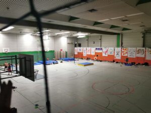 Geschlafen wird voraussichtlich in einer Sporthalle direkt neben der Jonglierhalle.